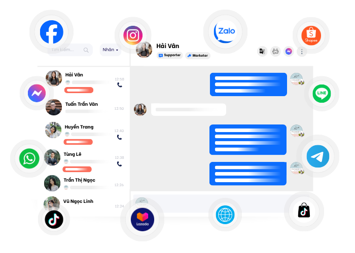 Giúp đồng bộ tin nhắn từ sàn thương mại điện tử như Shopee, Lazada, Tiktok. Từ đó, doanh nghiệp sẽ phản hồi sớm nhất, cải thiện chất lượng dịch vụ và giữ chân khách hàng hài lòng.
