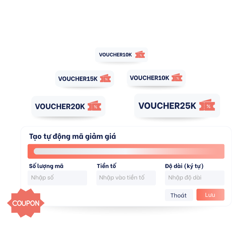 Tạo mã giảm giá để khách hàng dùng khi mua sắm trong khi mua hàng hoặc chơi game, giúp tăng động lực mua hàng