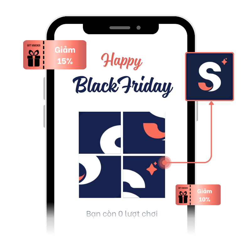 Thưởng cho khách hàng đã mua hoặc đã tương tác bằng cơ chế game viral bốc túi mù nhận quà ngẫu nhiên và bí mật