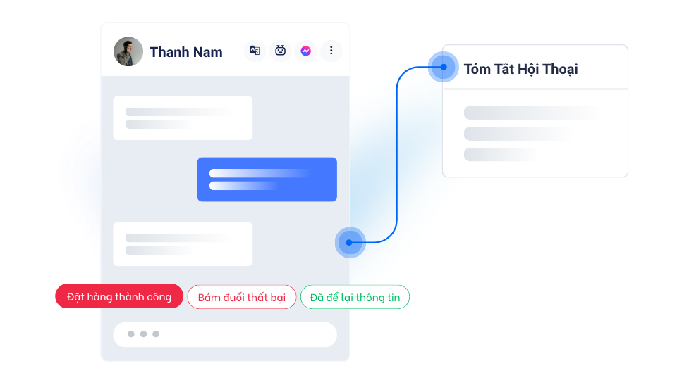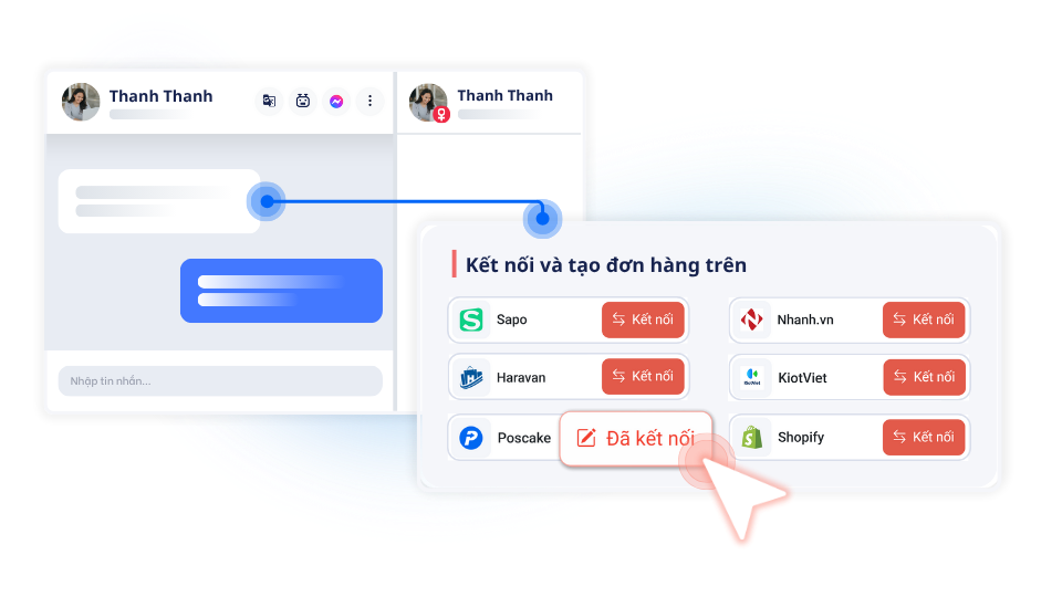 Khi khách hàng có nhu cầu, nhân sự có thể tạo đơn, tạo lead ngay trong khung chat với giao diện được đồng bộ sẵn với các phần mềm quản lý bán hàng, form từ các CRM hoặc các url thu thông tin được xuất bản