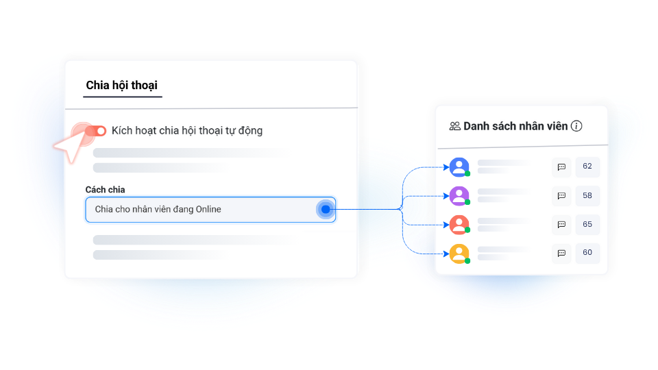 Tự động chỉ định tin nhắn cho nhân viên dựa trên các quy tắc như giờ làm việc, thời gian hoặc chỉ định theo tag