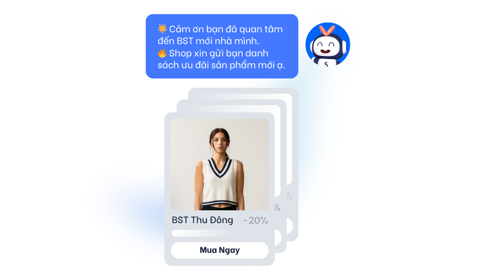 Gửi mẫu tin nhắn cho các câu hỏi thường gặp, gửi luồng bot phức tạp cho yêu cầu nâng cao như mua hàng, đánh giá,.v,v