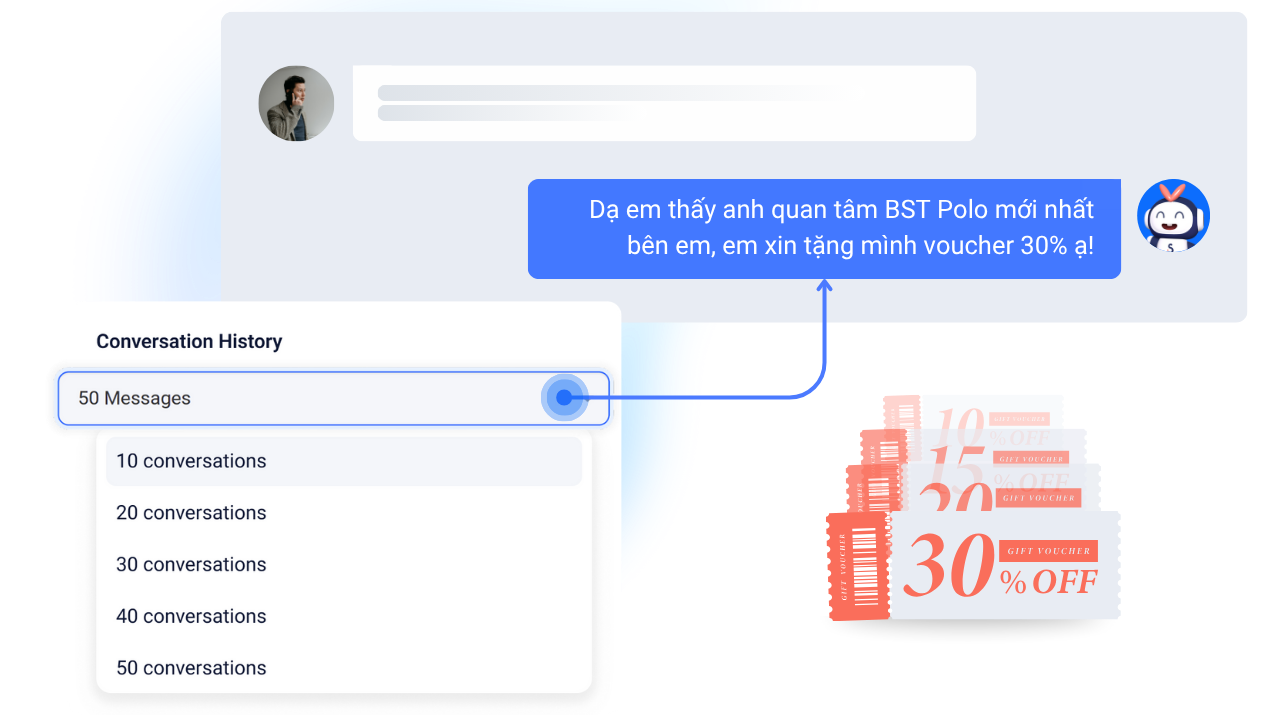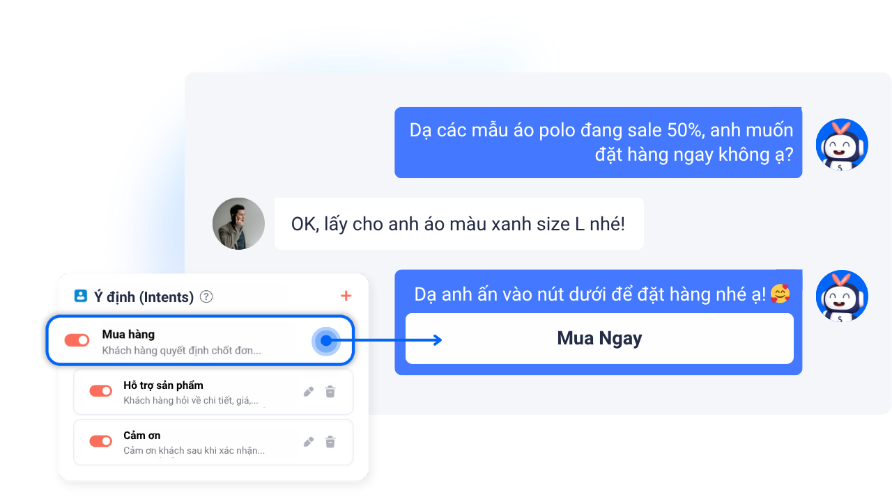 AI của Smax AI có thể học theo thời gian khi trò chuyện với một khách hàng cụ thể. AI sẽ hiểu ý định và nhu cầu của khách để trả lời hoặc kích hoạt luồng tự động hoá đáp ứng nhu cầu!
