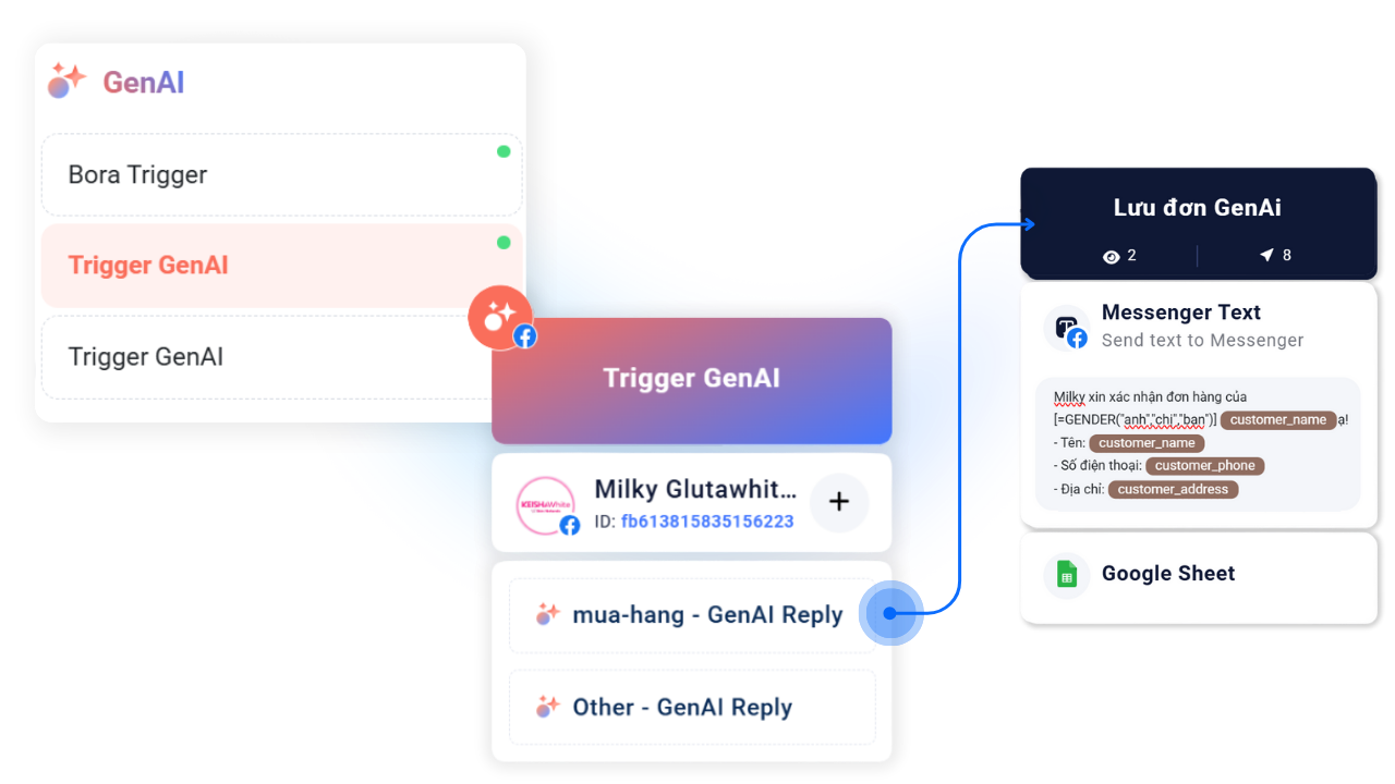 Đưa AI vào vị trí phù hợp trong luồng bot và trigger để AI bắt đầu nhiệm vụ trả lời theo đúng ngữ cảnh