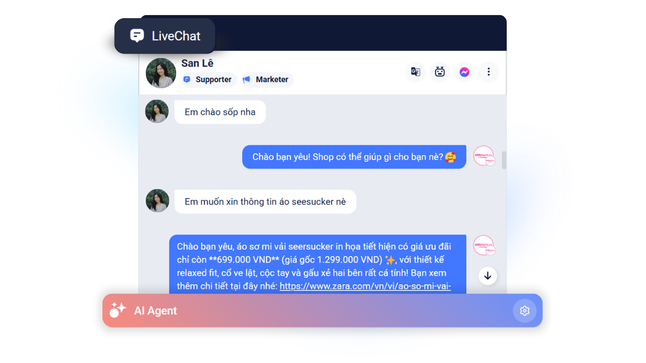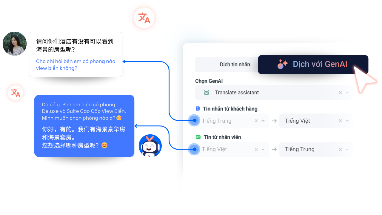 Gắn AI vào Live Chat để hỗ trợ dịch, sửa nội dung phản hồi và tóm tắt nội dung hội thoại