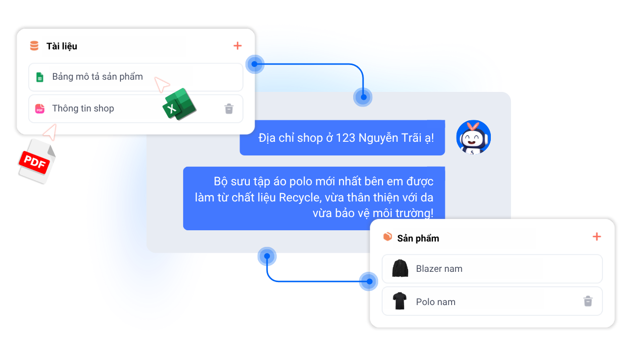 Tạo trợ lý AI theo nhu cầu của doanh nghiệp bằng cách nhập prompt và cung cấp dữ liệu doanh nghiệp, sản phẩm để AI nạp tự học