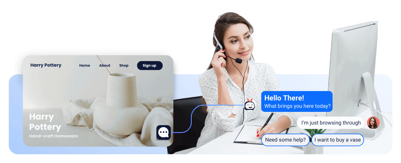 Customers can easily know matching products based on their preferences directly within the web live chat widget, then add to cart and purchase right away